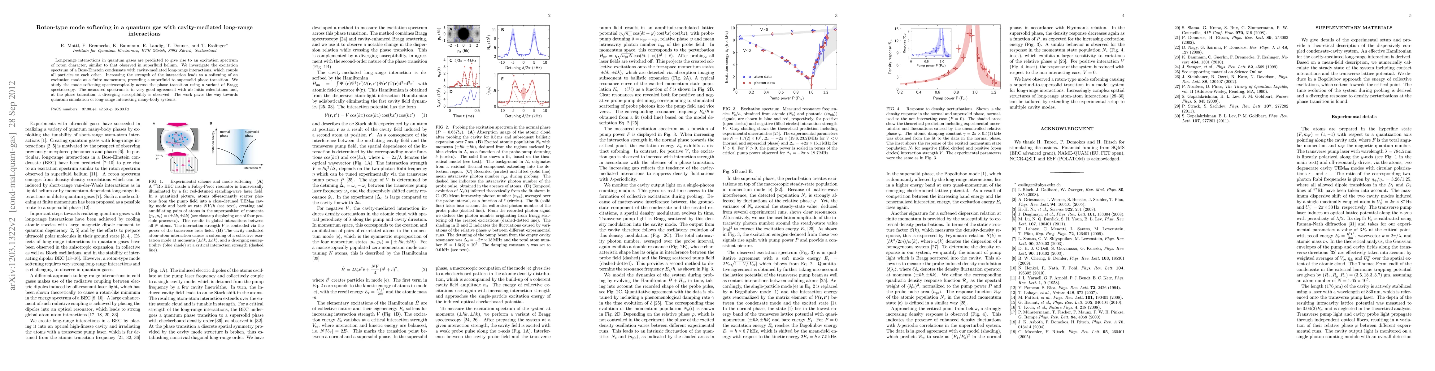 This paper explores the excitation spectrum of a Bose-Einstein condensate with cavity-mediated long-range interactions, revealing roton-type mode softening and a precursor to superfluid-to-supersolid phase transition. The spectroscopic study aligns well with theoretical predictions, indicating potential for quantum simulation of complex many-body systems.