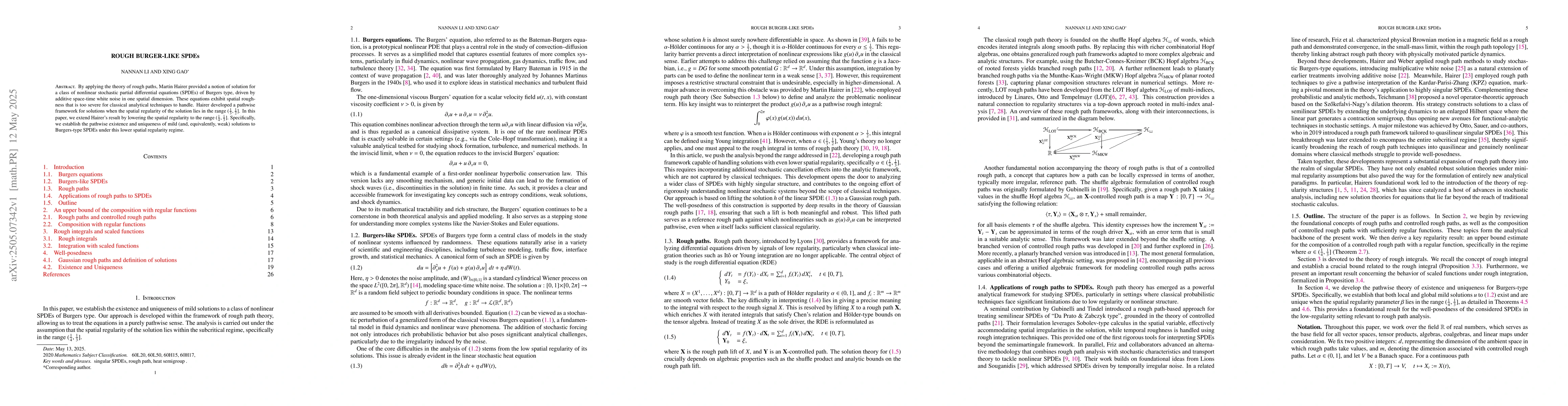 The research builds upon Martin Hairer's theory of rough paths to develop a pathwise framework for solutions of Burgers-type SPDEs, extending the spatial regularity range from (1/3, 1/2] to (1/4, 1/3] for existence and uniqueness of mild solutions.