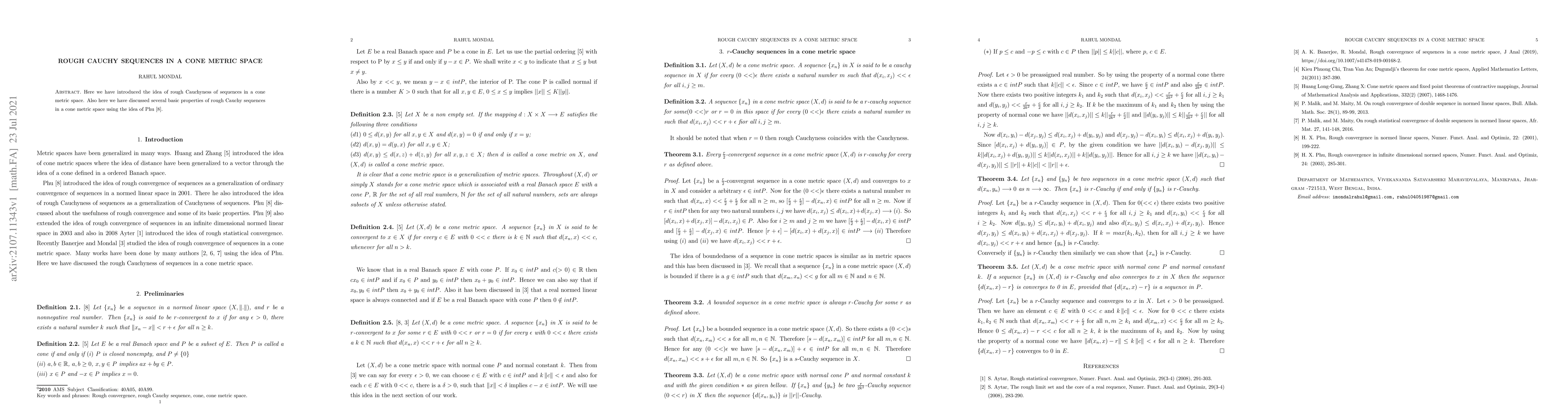Summary: This paper introduces the concept of rough Cauchy sequences in cone metric spaces and explores their fundamental properties, utilizing the framework developed by Phu. The study provides insights into the behavior of these sequences within the specified mathematical structure.