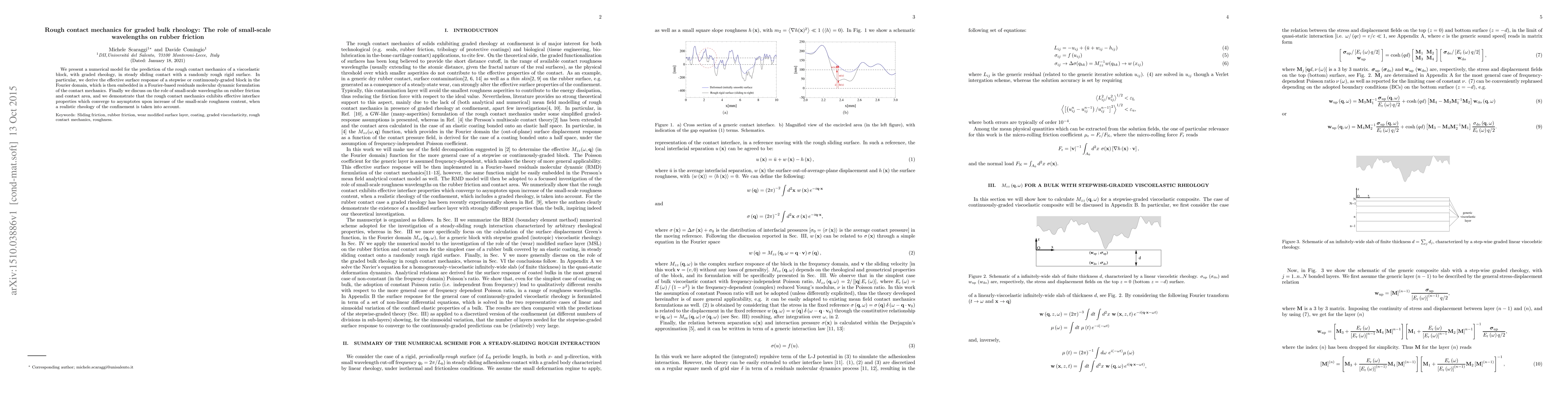 This paper develops a numerical model to predict the rough contact mechanics of a viscoelastic block with graded rheology sliding against a rough rigid surface. It highlights the influence of small-scale wavelengths on rubber friction and contact area, showing that effective interface properties converge to asymptotes with increased small-scale roughness.