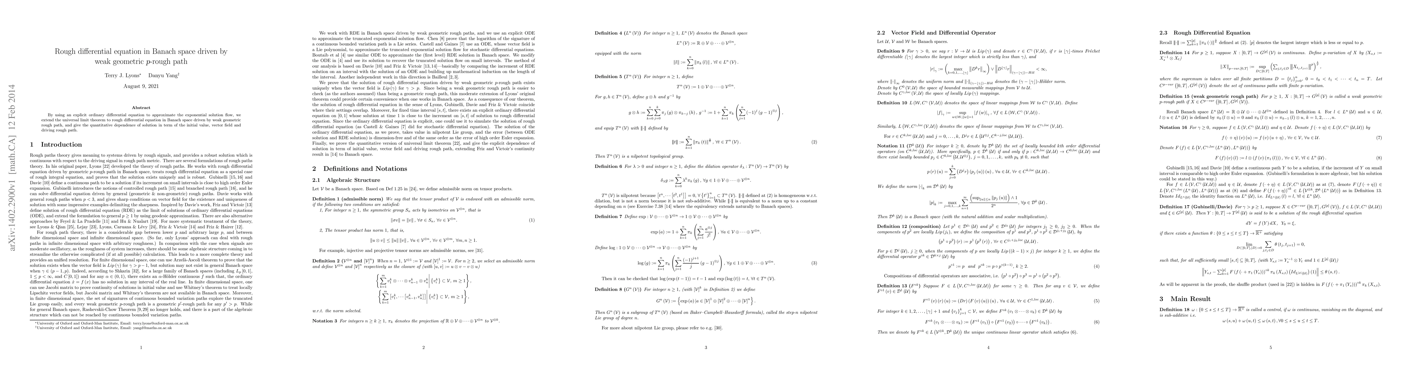 By using an explicit ordinary differential equation to approximate the exponential solution flow, we extend the universal limit theorem to rough differential equation in Banach space driven by weak geometric rough path, and give the quantitative dependence of solution in term of the initial value, vector field and driving rough path.