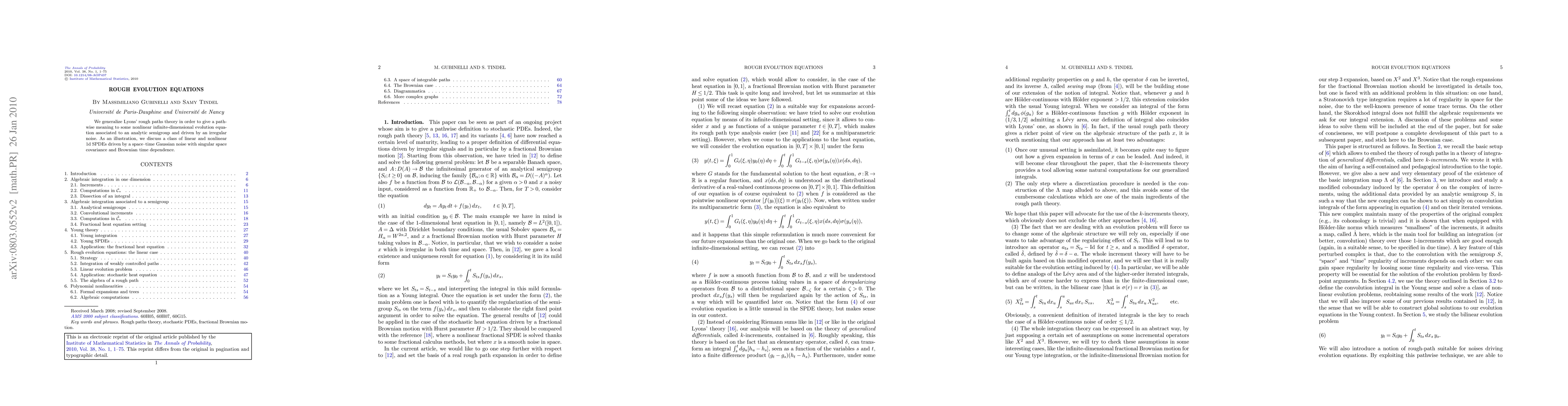 This paper extends Lyons' rough paths theory to provide a pathwise interpretation for nonlinear infinite-dimensional evolution equations linked to an analytic semigroup and irregular noise. It exemplifies this by analyzing linear and nonlinear 1D stochastic partial differential equations (SPDEs) influenced by Gaussian noise with unique spatial covariance and Brownian time characteristics.