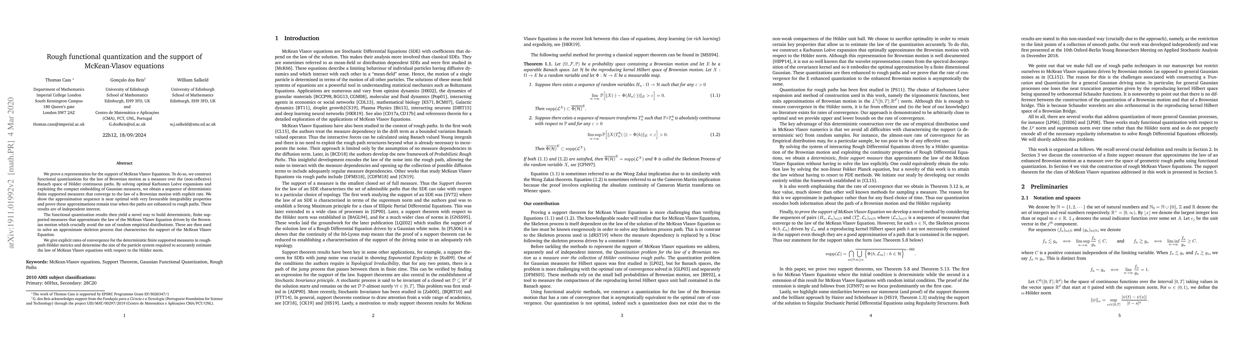 We prove a representation for the support of McKean Vlasov Equations. To do so, we construct functional quantizations for the law of Brownian motion as a measure over the (non-reflexive) Banach space of H\"older continuous paths. By solving optimal Karhunen Lo\`eve expansions and exploiting the compact embedding of Gaussian measures, we obtain a sequence of deterministic finite supported measures that converge to the law of a Brownian motion with explicit rate. We show the approximation sequence is near optimal with very favourable integrability properties and prove these approximations remain true when the paths are enhanced to rough paths. These results are of independent interest. The functional quantization results then yield a novel way to build deterministic, finite supported measures that approximate the law of the McKean Vlasov Equation driven by the Brownian motion which crucially avoid the use of random empirical distributions. These are then used to solve an approximate skeleton process that characterises the support of the McKean Vlasov Equation. We give explicit rates of convergence for the deterministic finite supported measures in rough-path H\"older metrics and determine the size of the particle system required to accurately estimate the law of McKean Vlasov equations with respect to the H\"older norm.