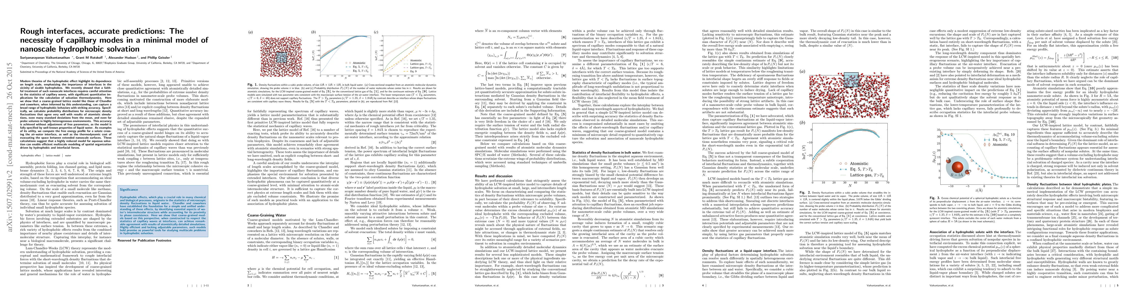 This paper demonstrates that a coarse-grained lattice model, informed by capillary wave statistics, can accurately predict nanoscale hydrophobic solvation behaviors without free parameter adjustments. The model successfully captures density fluctuations and thermodynamic costs in heterogeneous environments, suggesting its potential for multiscale modeling of hydrophobic interactions.
