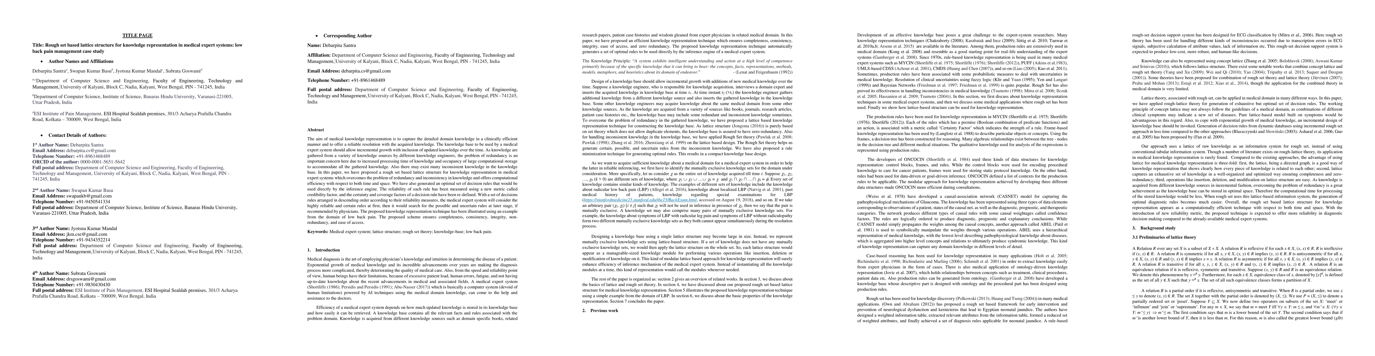 This paper proposes a rough set based lattice structure for efficient knowledge representation in medical expert systems, specifically addressing low back pain management. The method tackles redundancy and inconsistency, offering computational efficiency and reliability through a new credibility factor metric and redefined certainty and coverage factors for decision rules.