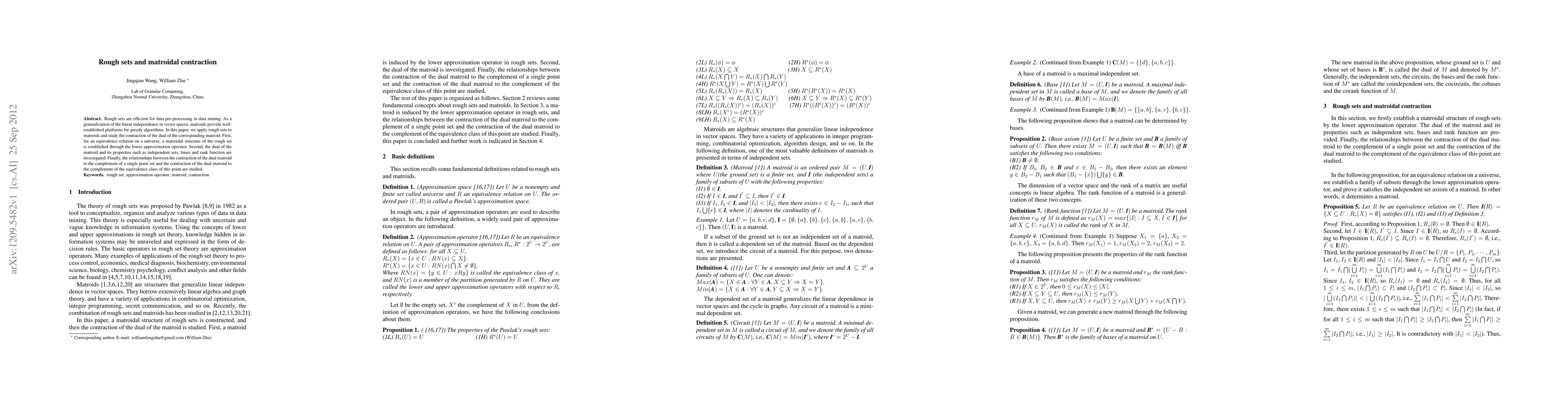 This paper explores the application of rough sets to matroids, establishing a matroidal structure using rough set theory. It investigates the properties of the dual matroid, including independent sets and bases, and examines the impact of matroidal contractions on the complement of single point sets versus equivalence class complements.