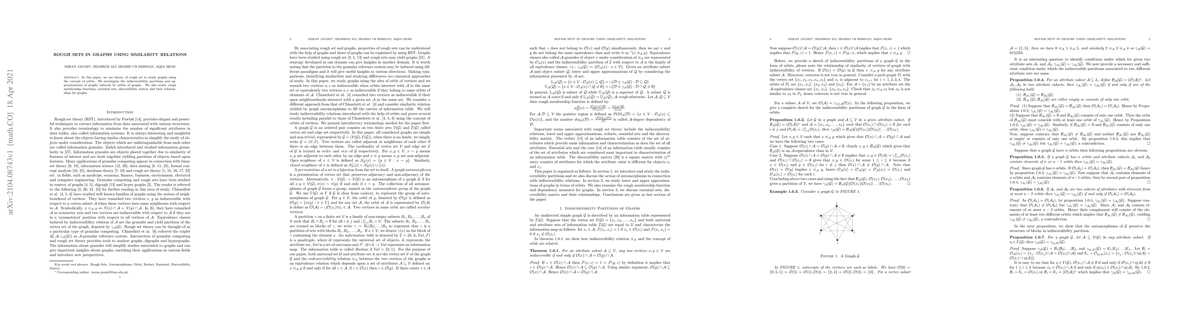 This work stands out by merging rough set theory with graph theory, providing a new perspective on studying graph structures using indiscernibility relations and orbits, which is not extensively covered in existing literature.