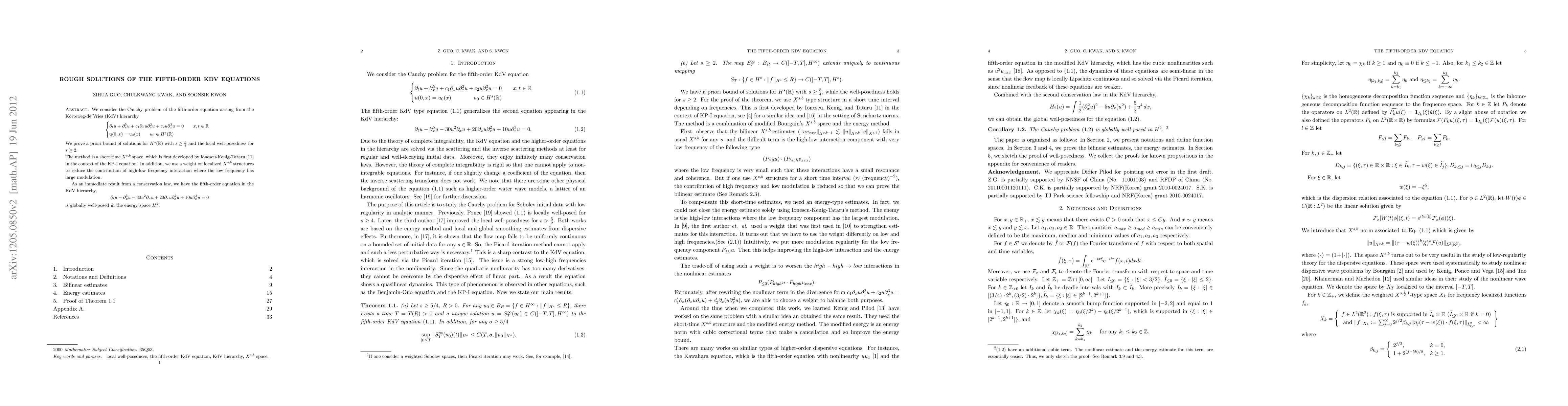 This paper investigates the Cauchy problem for a fifth-order KdV equation, proving local well-posedness for H^s(\R) with s >= 2 and a priori bounds for s >= 5/4 using a short time X^{s,b} framework. It also demonstrates global well-posedness in the energy space H^2 through a conservation law.