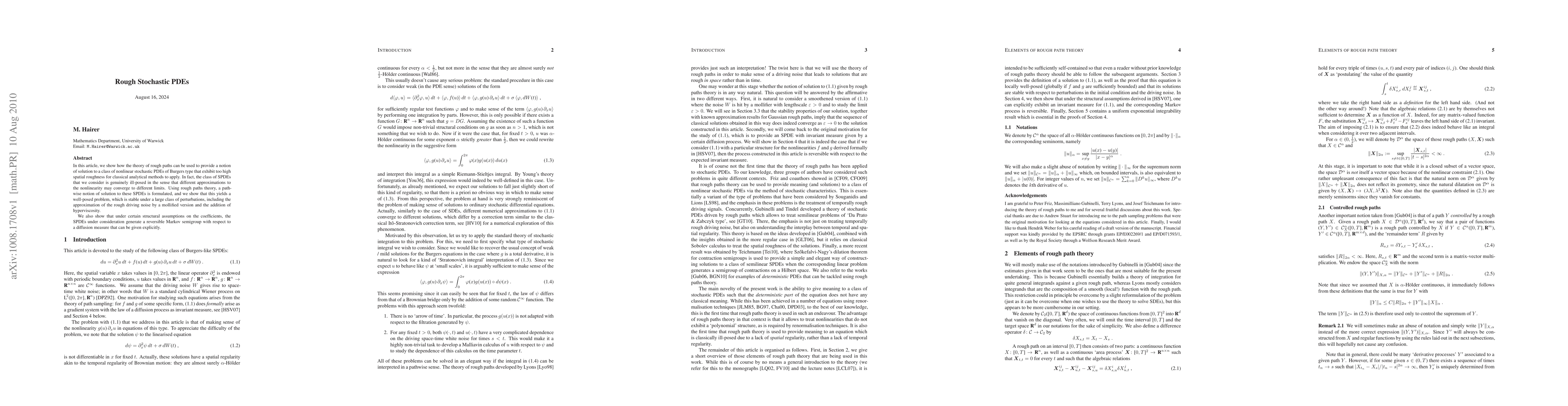 In this article, we show how the theory of rough paths can be used to provide a notion of solution to a class of nonlinear stochastic PDEs of Burgers type that exhibit too high spatial roughness for classical analytical methods to apply. In fact, the class of SPDEs that we consider is genuinely ill-posed in the sense that different approximations to the nonlinearity may converge to different limits. Using rough paths theory, a pathwise notion of solution to these SPDEs is formulated, and we show that this yields a well-posed problem, which is stable under a large class of perturbations, including the approximation of the rough driving noise by a mollified version and the addition of hyperviscosity. We also show that under certain structural assumptions on the coefficients, the SPDEs under consideration generate a reversible Markov semigroup with respect to a diffusion measure that can be given explicitly.