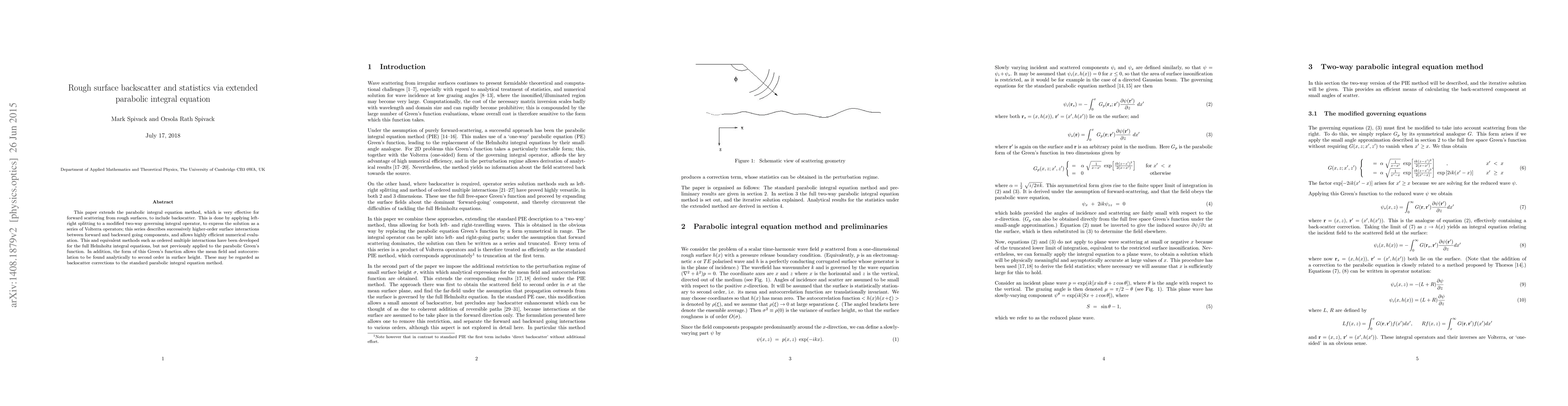 This paper extends the parabolic integral equation method, which is very effective for forward scattering from rough surfaces, to include backscatter. This is done by applying left-right splitting to a modified two-way governing integral operator, to express the solution as a series of Volterra operators; this series describes successively higher-order surface interactions between forward and backward going components, and allows highly efficient numerical evaluation. This and equivalent methods such as ordered multiple interactions have been developed for the full Helmholtz integral equations, but not previously applied to the parabolic Green's function. In addition, the form of this Green's function allows the mean field and autocorrelation to be found analytically to second order in surface height. These may be regarded as backscatter corrections to the standard parabolic integral equation method.