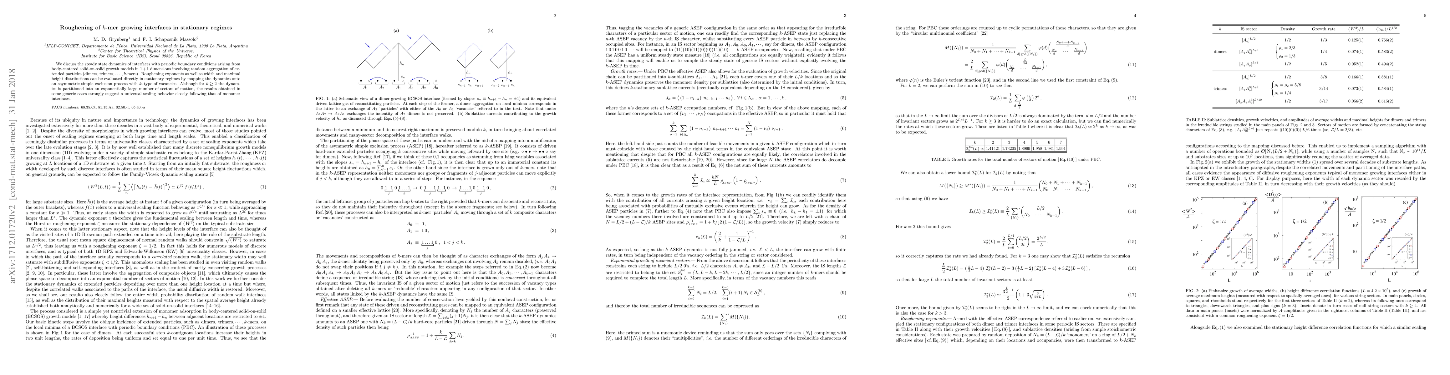 This paper investigates the steady-state dynamics of solid-on-solid growth models with periodic boundary conditions, focusing on $k$-mer aggregation. It finds that roughening exponents and height distributions can be evaluated through an asymmetric simple exclusion process, revealing a universal scaling behavior similar to monomer interfaces despite complex dynamics for $k \ge 2$.