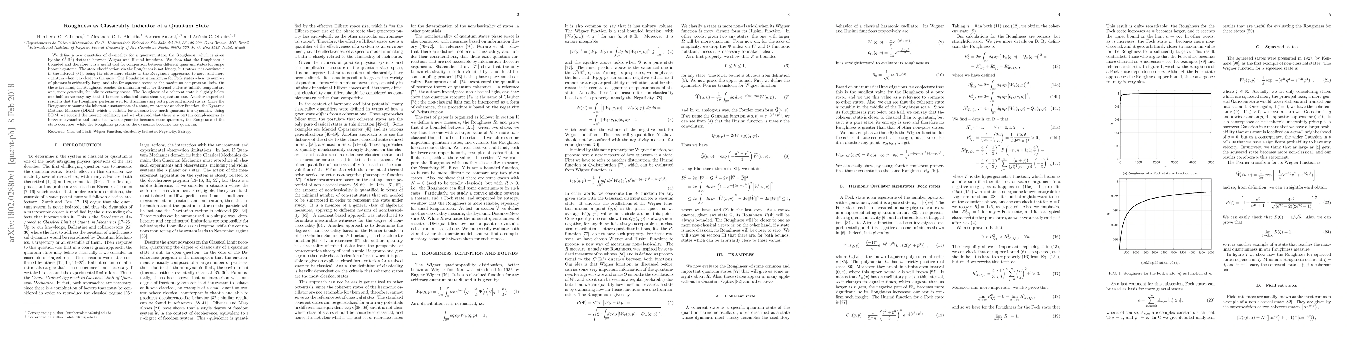 We define a new quantifier of classicality for a quantum state, the Roughness, which is given by the $\mathcal{L}^2 (\R^2)$ distance between Wigner and Husimi functions. We show that the Roughness is bounded and therefore it is a useful tool for comparison between different quantum states for single bosonic systems. The state classification via the Roughness is not binary, but rather it is continuous in the interval [0,1], being the state more classic as the Roughness approaches to zero, and more quantum when it is closer to the unity. The Roughness is maximum for Fock states when its number of photons is arbitrarily large, and also for squeezed states at the maximum compression limit. On the other hand, the Roughness reaches its minimum value for thermal states at infinite temperature and, more generally, for infinite entropy states. The Roughness of a coherent state is slightly below one half, so we may say that it is more a classical state than a quantum one. Another important result is that the Roughness performs well for discriminating both pure and mixed states. Since the Roughness measures the inherent quantumness of a state, we propose another function, the Dynamic Distance Measure (DDM), which is suitable for measure how much quantum is a dynamics. Using DDM, we studied the quartic oscillator, and we observed that there is a certain complementarity between dynamics and state, i.e. when dynamics becomes more quantum, the Roughness of the state decreases, while the Roughness grows as the dynamics becomes less quantum.