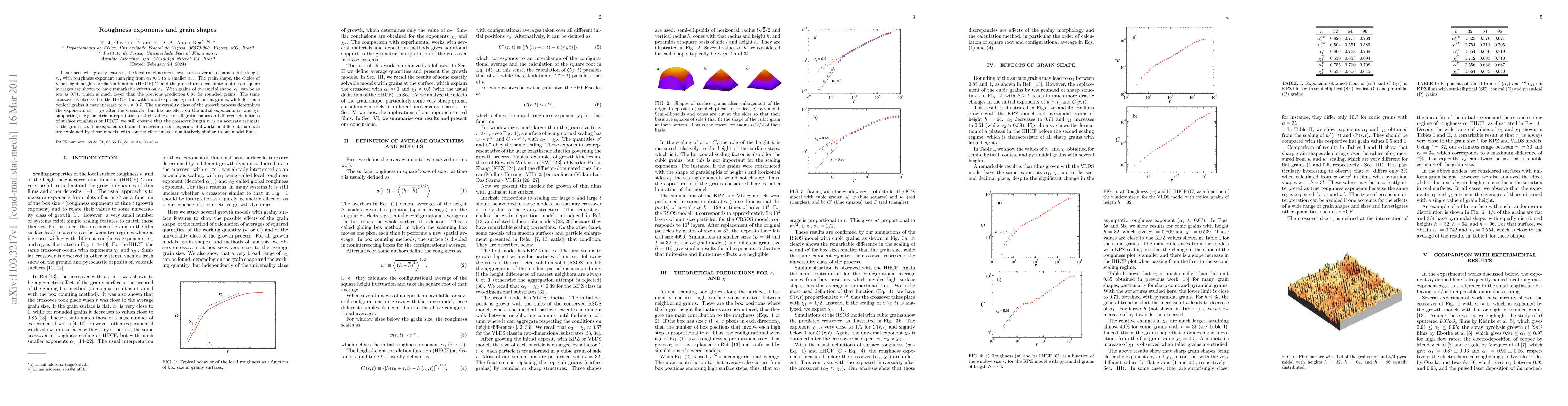Researchers found that the roughness of grainy surfaces changes from a high exponent to a lower one as the grain size increases, with different grain shapes affecting the initial exponents. The crossover length remains accurate regardless of grain shape or surface definition.