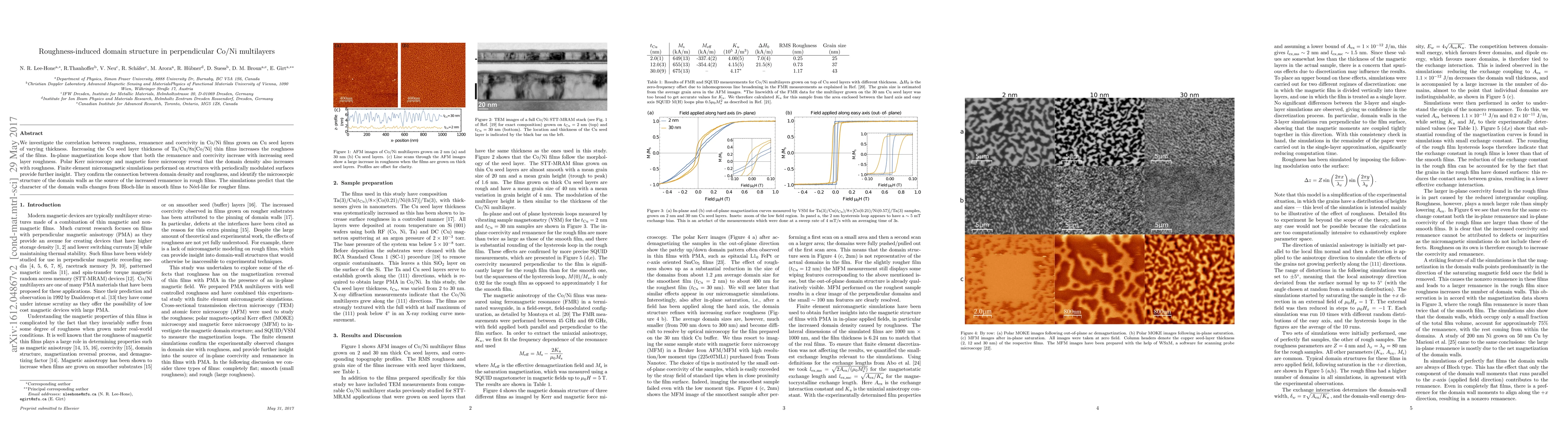 We investigate the correlation between roughness, remanence and coercivity in Co/Ni films grown on Cu seed layers of varying thickness. Increasing the Cu seed layer thickness of Ta/Cu/8x[Co/Ni] thin films increases the roughness of the films. In-plane magnetization loops show that both the remanance and coercivity increase with increasing seed layer roughness. Polar Kerr microscopy and magnetic force microscopy reveal that the domain density also increases with roughness. Finite element micromagnetic simulations performed on structures with periodically modulated surfaces provide further insight. They confirm the connection between domain density and roughness, and identify the microsocpic structure of the domain walls as the source of the increased remanence in rough films. The simulations predict that the character of the domain walls changes from Bloch-like in smooth films to N\'eel-like for rougher films.