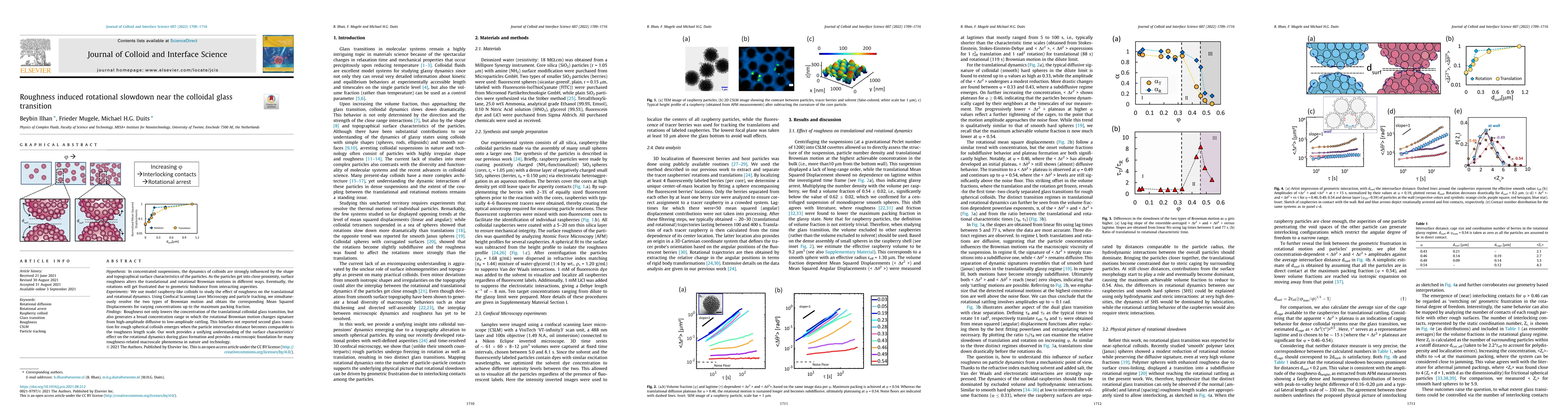 This study reveals that surface roughness on spherical colloids alters both translational and rotational dynamics in dense suspensions, leading to a secondary glass transition marked by rotational changes from high-amplitude diffusion to low-amplitude rattling, driven by interlocking contacts as particle intersurface distances approach the roughness scale.