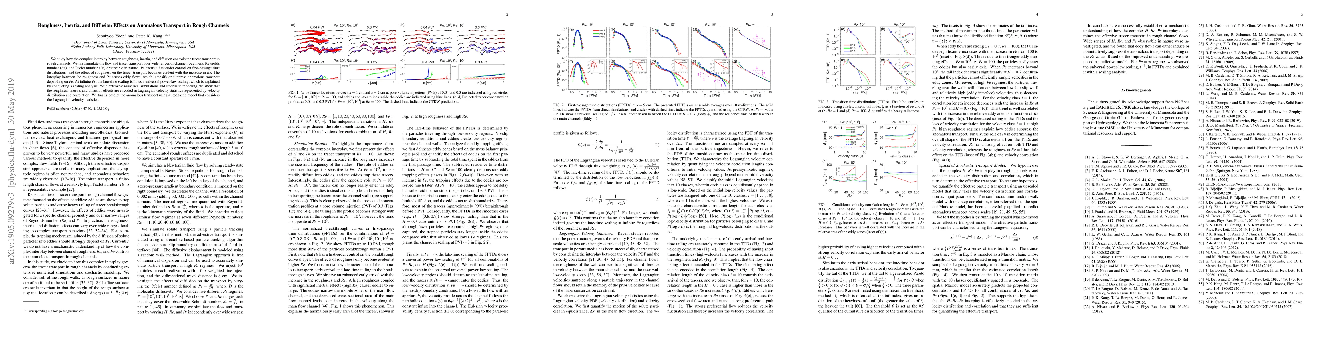 Researchers studied how roughness and inertia control tracer transport in channels, finding that eddy flows influenced by channel roughness and Reynolds number impact transport; they also discovered a universal power-law scaling at high Peclet numbers.