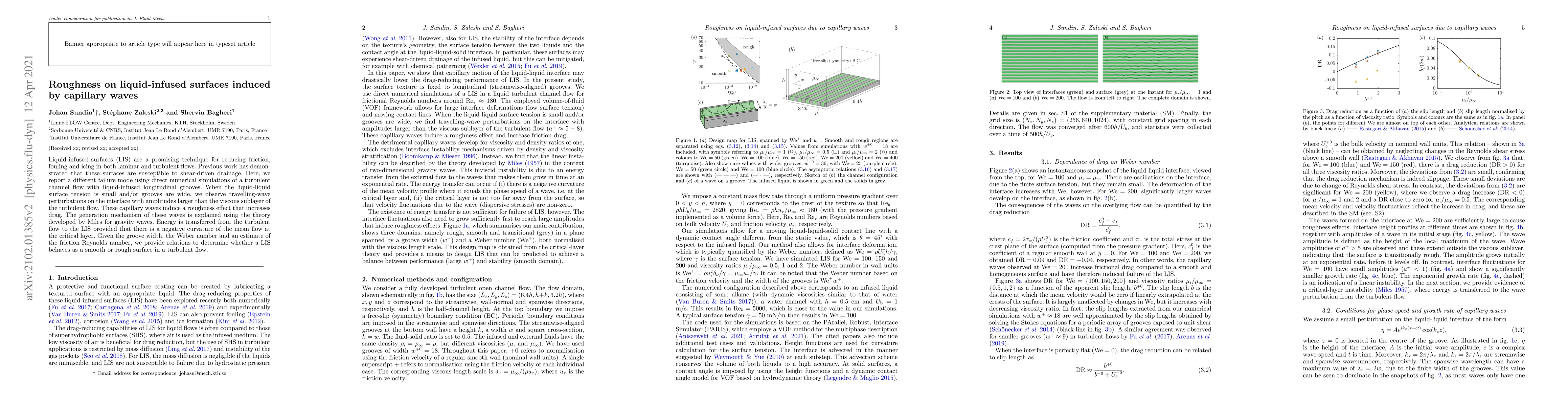 This study investigates the failure mode of liquid-infused surfaces (LIS) in turbulent flows due to capillary waves, showing they can induce roughness and increased drag when liquid-liquid surface tension is low or grooves are wide. The analysis employs Miles' theory to explain wave generation and provides relations to predict LIS behavior in turbulent conditions.