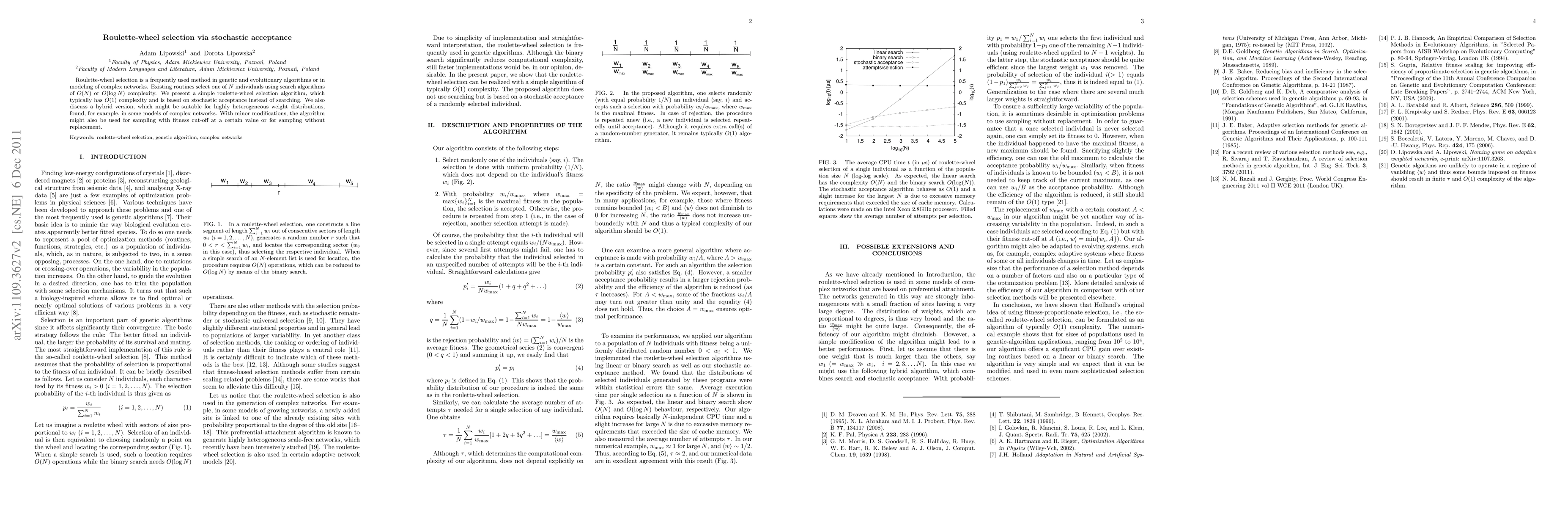 This paper introduces a novel O(1) complexity roulette-wheel selection algorithm based on stochastic acceptance, offering an efficient alternative to existing O(N) or O(log(N)) methods in genetic and evolutionary algorithms. It also presents a hybrid version for handling highly heterogeneous weight distributions.