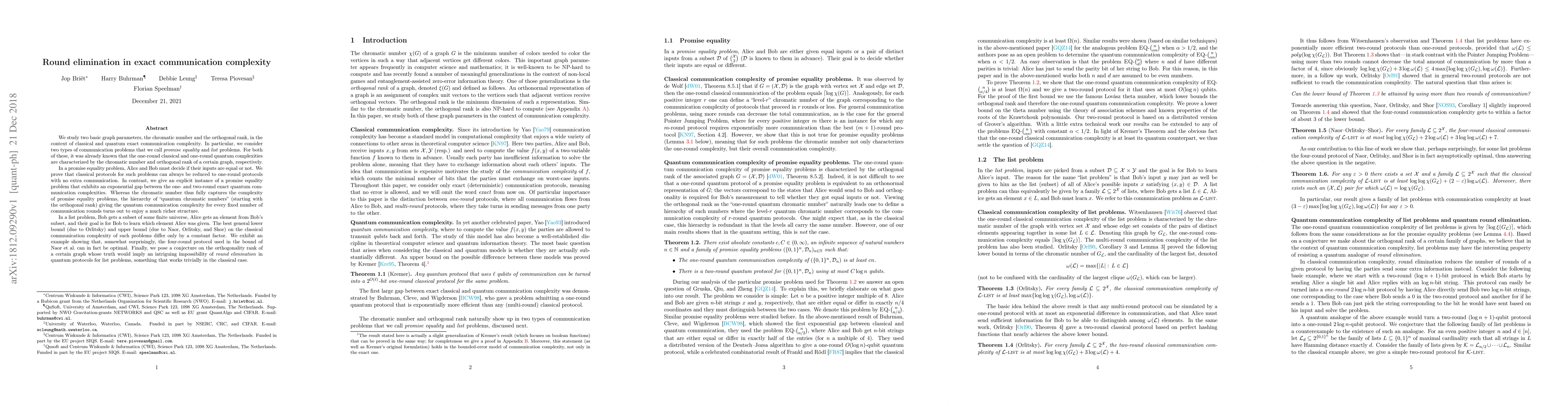 Researchers studied graph parameters for classical and quantum exact communication complexity in promise equality and list problems, finding new insights on round elimination and the power of quantum protocols.