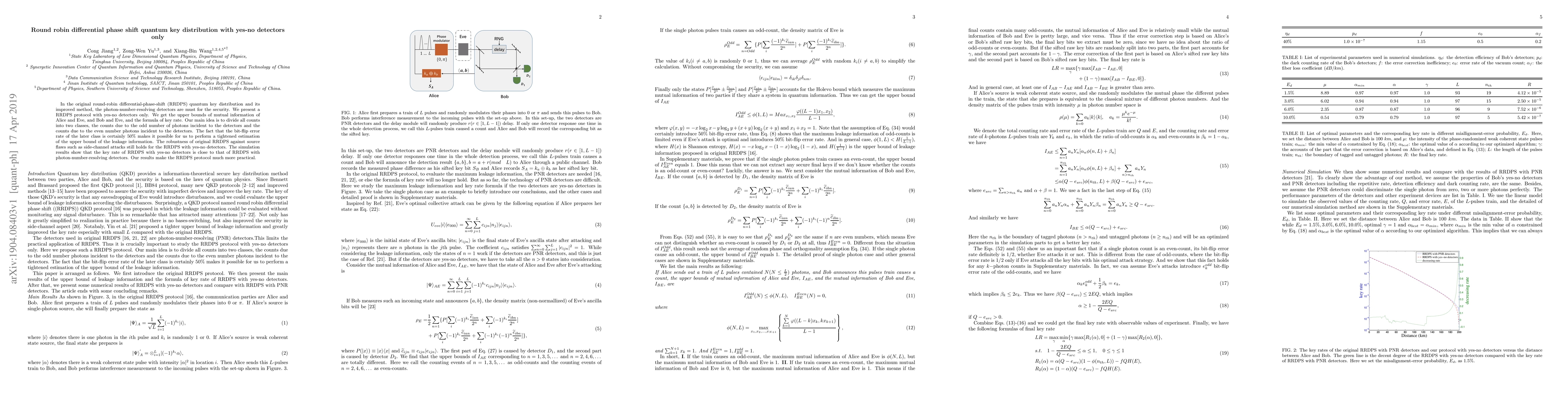 This paper proposes a round-robin differential phase shift quantum key distribution protocol using only yes-no detectors, achieving a key rate comparable to methods using photon-number-resolving detectors. The authors demonstrate a tighter estimation of information leakage by classifying counts into odd and even photon numbers, maintaining robustness against side-channel attacks.