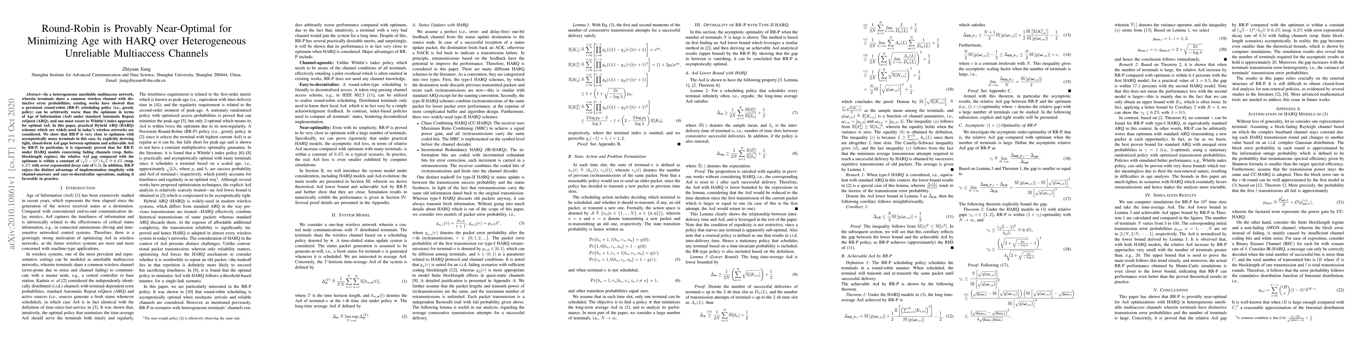This paper demonstrates that round-robin scheduling is provably near-optimal for minimizing Age of Information (AoI) in heterogeneous unreliable multiaccess channels under Hybrid ARQ (HARQ). It shows that round-robin performs within a small constant gap of 6.4% (or 6.2%) compared to the optimum, while offering practical benefits like simplicity and ease of implementation.