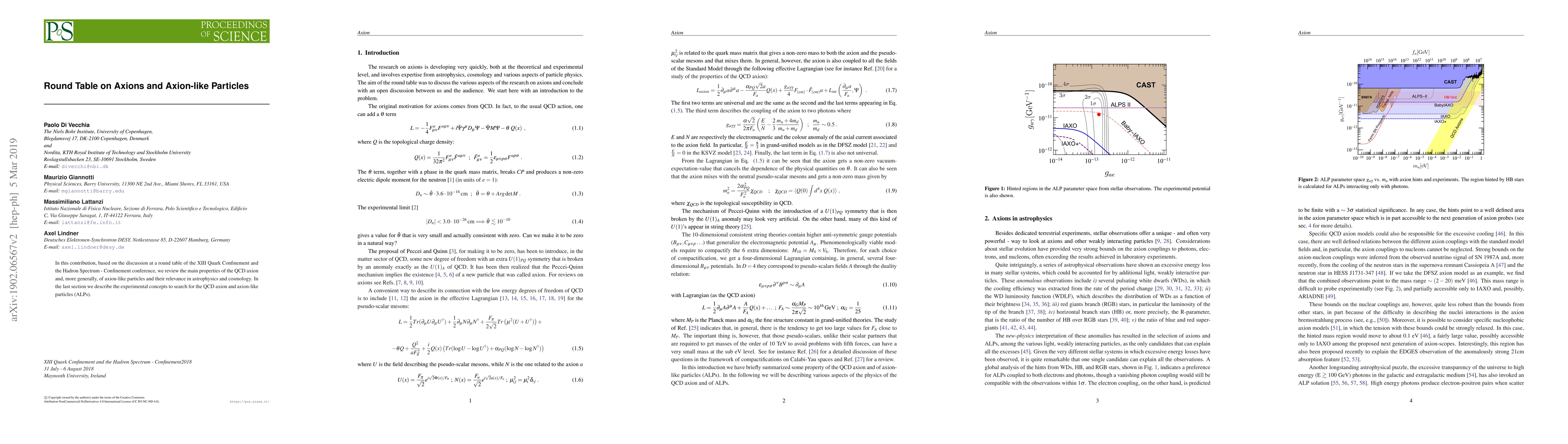 In this contribution, based on the discussion at a round table of the XIII Quark Confinement and the Hadron Spectrum - Confinement conference, we review the main properties of the QCD axion and, more generally, of axion-like particles and their relevance in astrophysics and cosmology. In the last section we describe the experimental concepts to search for the QCD axion and axion-like particles (ALPs).