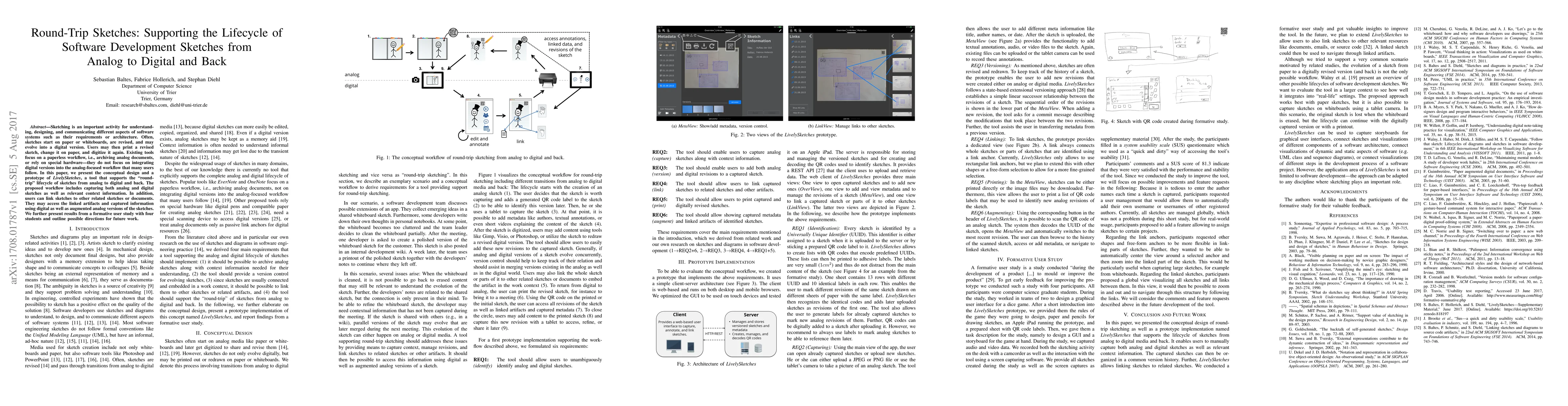 A new tool called LivelySketches supports a round-trip workflow for sketches, allowing users to create, revise, and digitize analog sketches while also accessing digital versions, facilitating communication and design throughout the software development lifecycle.
