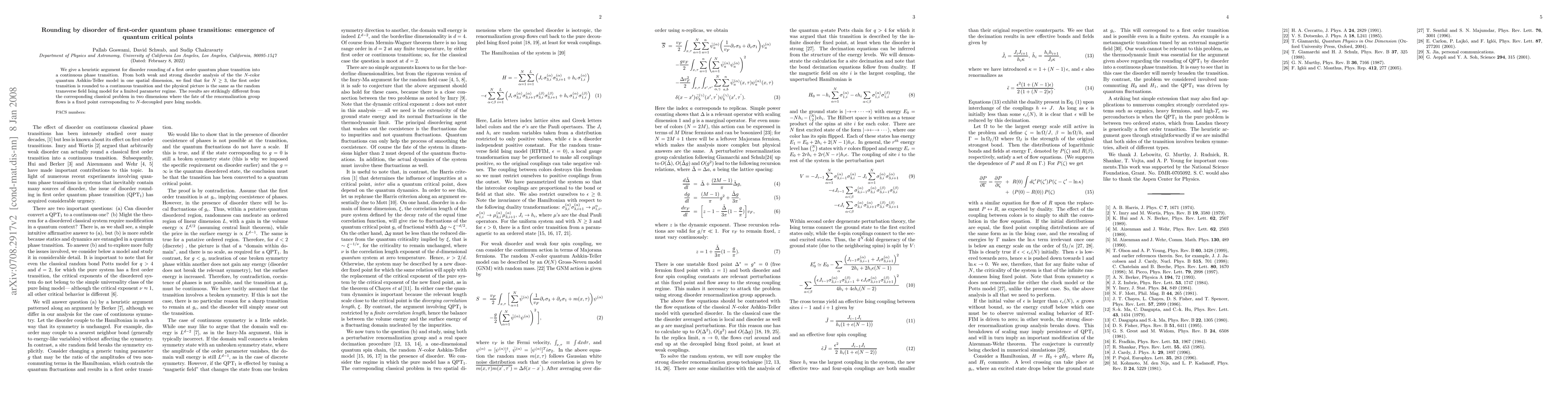 This paper argues that disorder can round a first-order quantum phase transition into a continuous one, demonstrated through the N-color quantum Ashkin-Teller model. The findings show that for $N \geq 3$, the transition becomes continuous, akin to the random transverse field Ising model, contrasting sharply with the classical two-dimensional problem.