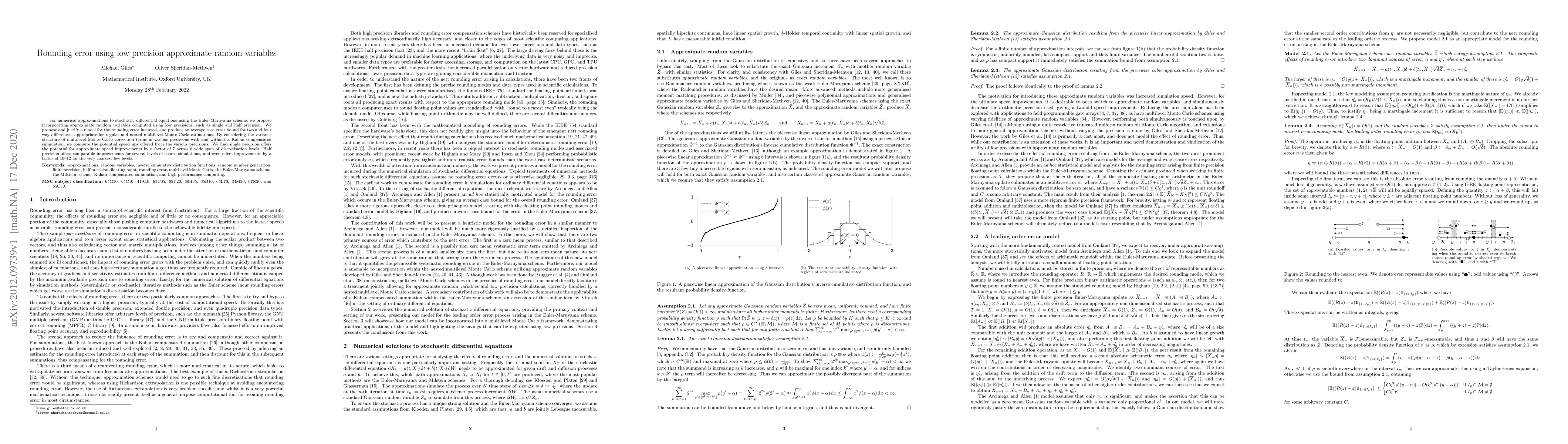 For numerical approximations to stochastic differential equations using the Euler-Maruyama scheme, we propose incorporating approximate random variables computed using low precisions, such as single and half precision. We propose and justify a model for the rounding error incurred, and produce an average case error bound for two and four way differences, appropriate for regular and nested multilevel Monte Carlo estimations. By considering the variance structure of multilevel Monte Carlo correction terms in various precisions with and without a Kahan compensated summation, we compute the potential speed ups offered from the various precisions. We find single precision offers the potential for approximate speed improvements by a factor of 7 across a wide span of discretisation levels. Half precision offers comparable improvements for several levels of coarse simulations, and even offers improvements by a factor of 10-12 for the very coarsest few levels.