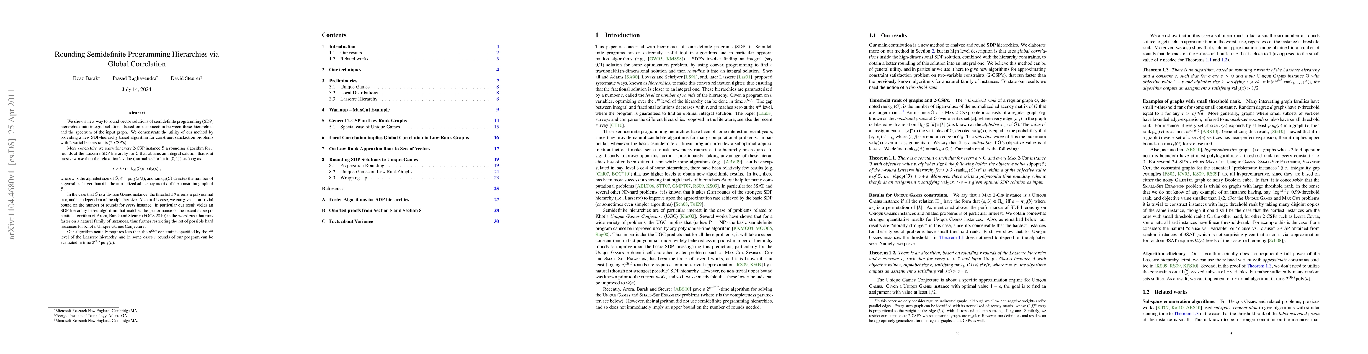 Researchers developed a new method to round semidefinite programming hierarchies into integral solutions based on graph spectrum, improving performance for constraint satisfaction problems with 2-variable constraints.