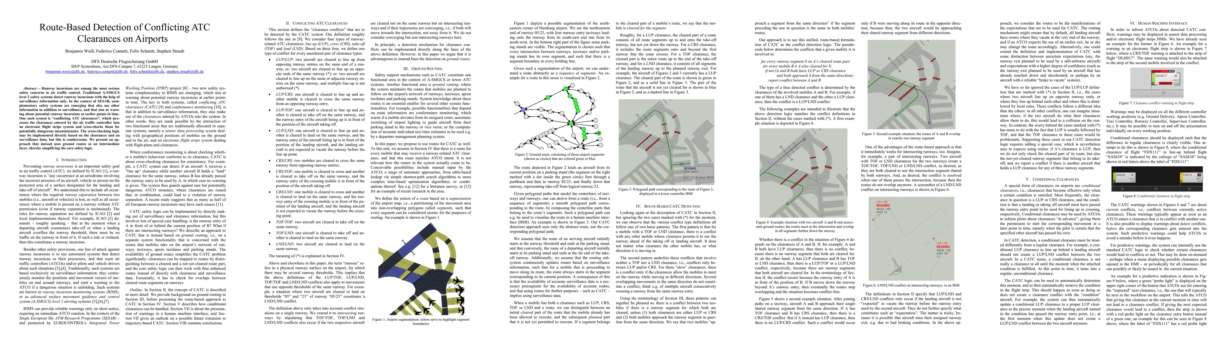 Runway incursions are among the most serious safety concerns in air traffic control. Traditional A-SMGCS level 2 safety systems detect runway incursions with the help of surveillance information only. In the context of SESAR, complementary safety systems are emerging that also use other information in addition to surveillance, and that aim at warning about potential runway incursions at earlier points in time. One such system is "conflicting ATC clearances", which processes the clearances entered by the air traffic controller into an electronic flight strips system and cross-checks them for potentially dangerous inconsistencies. The cross-checking logic may be implemented directly based on the clearances and on surveillance data, but this is cumbersome. We present an approach that instead uses ground routes as an intermediate layer, thereby simplifying the core safety logic.