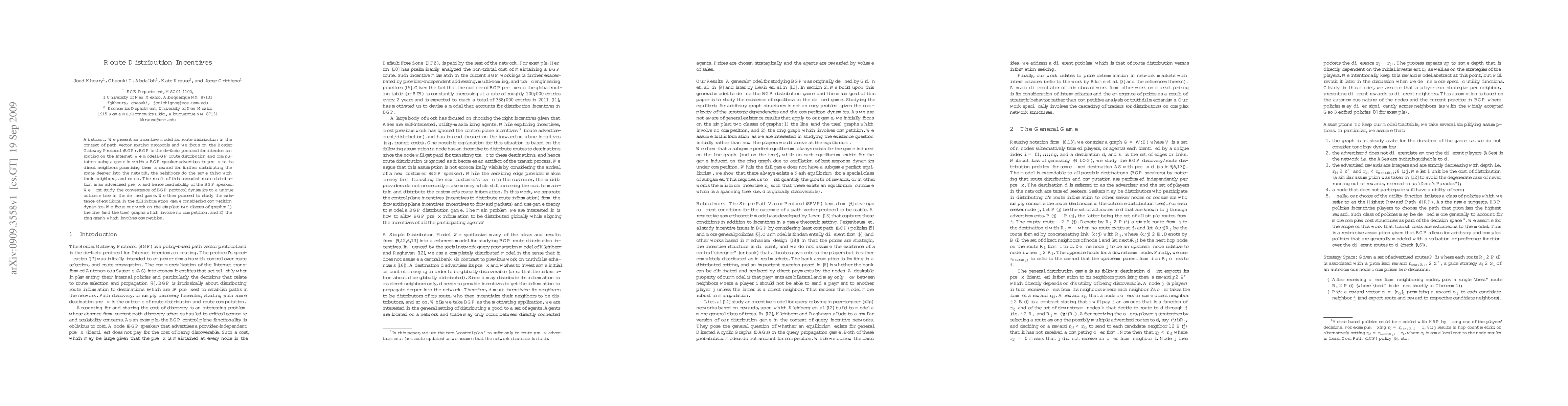 We present an incentive model for route distribution in the context of path vector routing protocols and we focus on the Border Gateway Protocol (BGP). BGP is the de-facto protocol for interdomain routing on the Internet. We model BGP route distribution and computation using a game in which a BGP speaker advertises its prefix to its direct neighbors promising them a reward for further distributing the route deeper into the network, the neighbors do the same thing with their neighbors, and so on. The result of this cascaded route distribution is an advertised prefix and hence reachability of the BGP speaker. We first study the convergence of BGP protocol dynamics to a unique outcome tree in the defined game. We then proceed to study the existence of equilibria in the full information game considering competition dynamics. We focus our work on the simplest two classes of graphs: 1) the line (and the tree) graphs which involve no competition, and 2) the ring graph which involves competition.