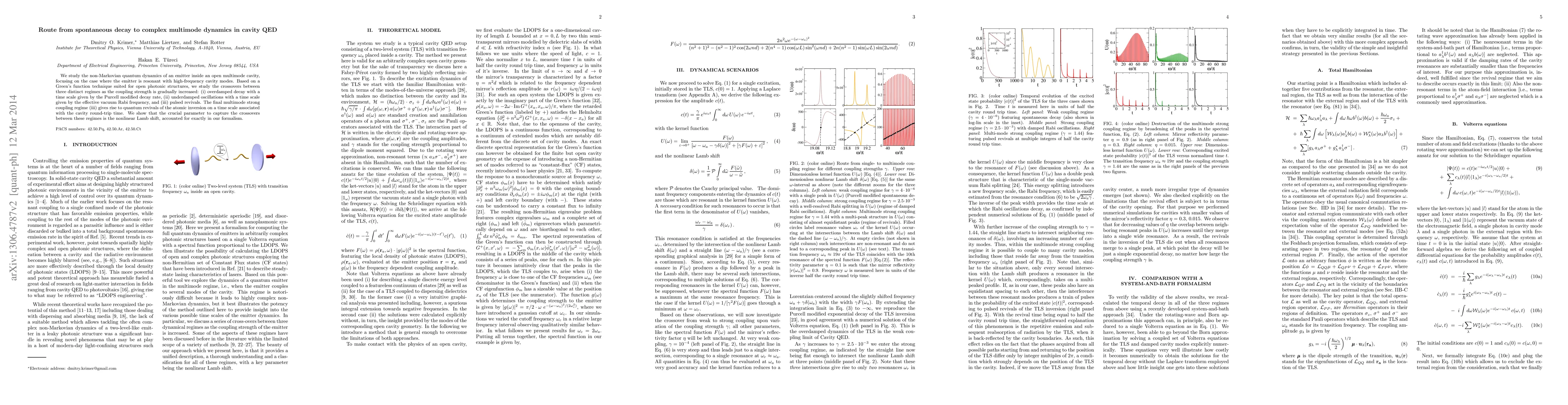 We study the non-Markovian quantum dynamics of an emitter inside an open multimode cavity, focusing on the case where the emitter is resonant with high-frequency cavity modes. Based on a Green's function technique suited for open photonic structures, we study the crossovers between three distinct regimes as the coupling strength is gradually increased: (i) overdamped decay with a time scale given by the Purcell modified decay rate, (ii) underdamped oscillations with a time scale given by the effective vacuum Rabi frequency, and (iii) pulsed revivals. The final multimode strong coupling regime (iii) gives rise to quantum revivals of the atomic inversion on a time scale associated with the cavity round-trip time. We show that the crucial parameter to capture the crossovers between these regimes is the nonlinear Lamb shift, accounted for exactly in our formalism.