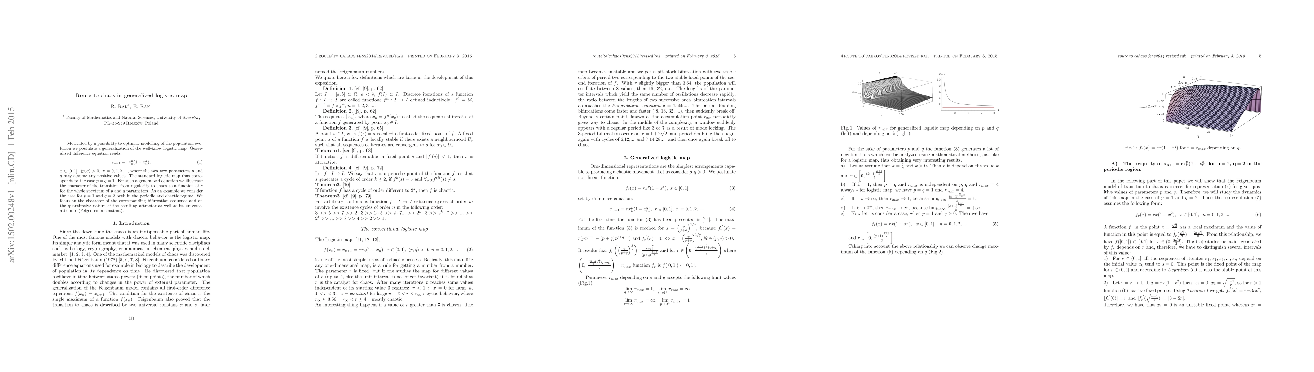 Researchers generalized the logistic map to study population evolution, introducing new parameters p and q that can lead to chaos under certain conditions. They found a universal attribute in the resulting attractor, known as the Feigenbaum constant.