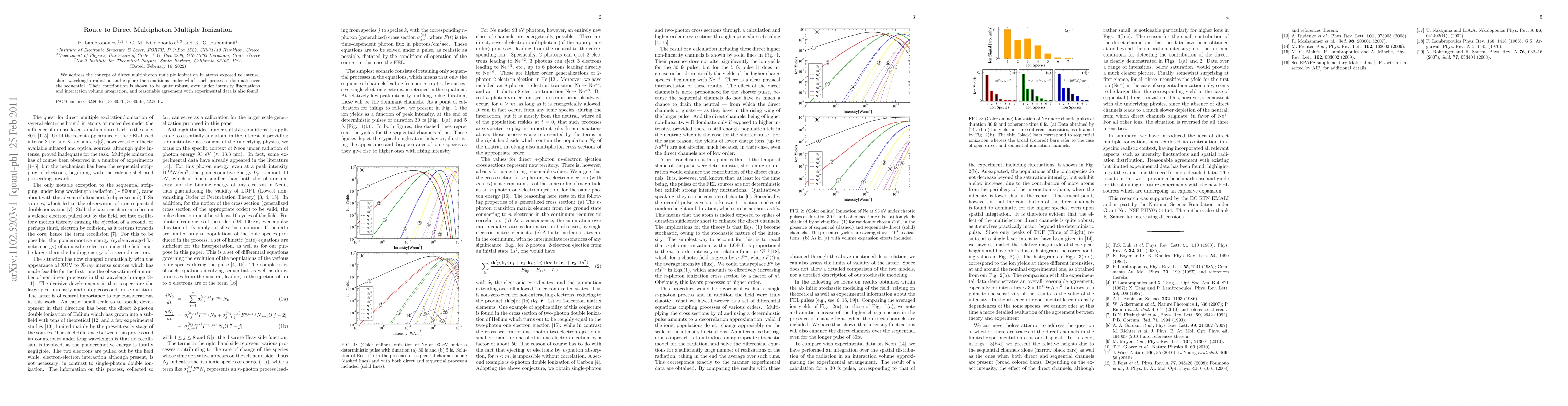 This paper investigates direct multiphoton multiple ionization in atoms subjected to intense, short wavelength radiation, demonstrating that this process can dominate over sequential ionization under certain conditions, showing robustness even with intensity fluctuations, and achieving reasonable agreement with experimental data.