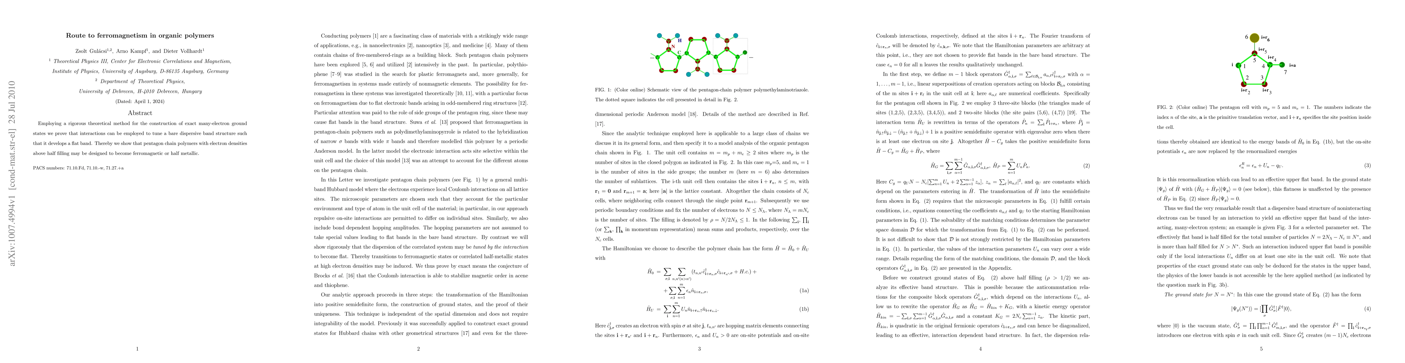 Employing a rigorous theoretical method for the construction of exact many-electron ground states we prove that interactions can be employed to tune a bare dispersive band structure such that it develops a flat band. Thereby we show that pentagon chain polymers with electron densities above half filling may be designed to become ferromagnetic or half metallic.