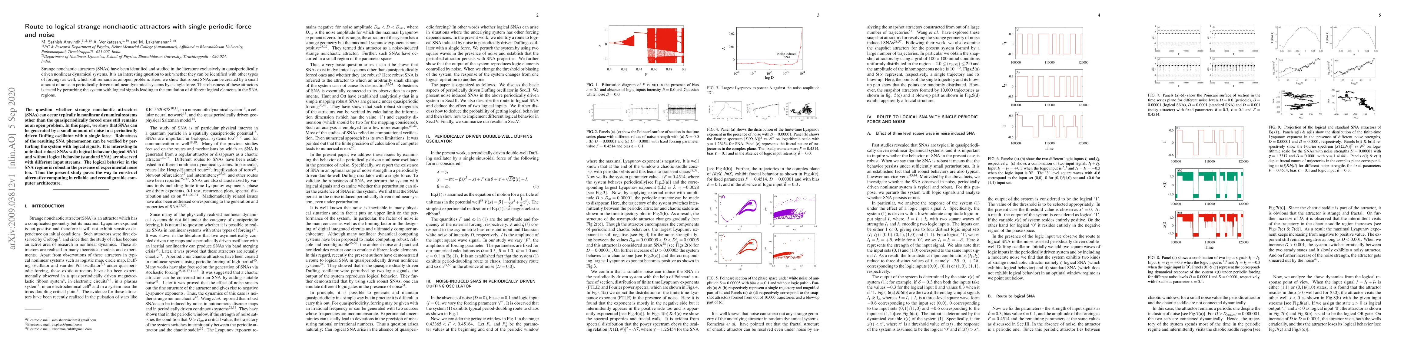 This paper demonstrates the creation of strange nonchaotic attractors (SNAs) in periodically driven nonlinear systems through a small amount of noise. The robustness of these SNAs is verified by using logical signals to emulate different logical elements within the SNA regions.