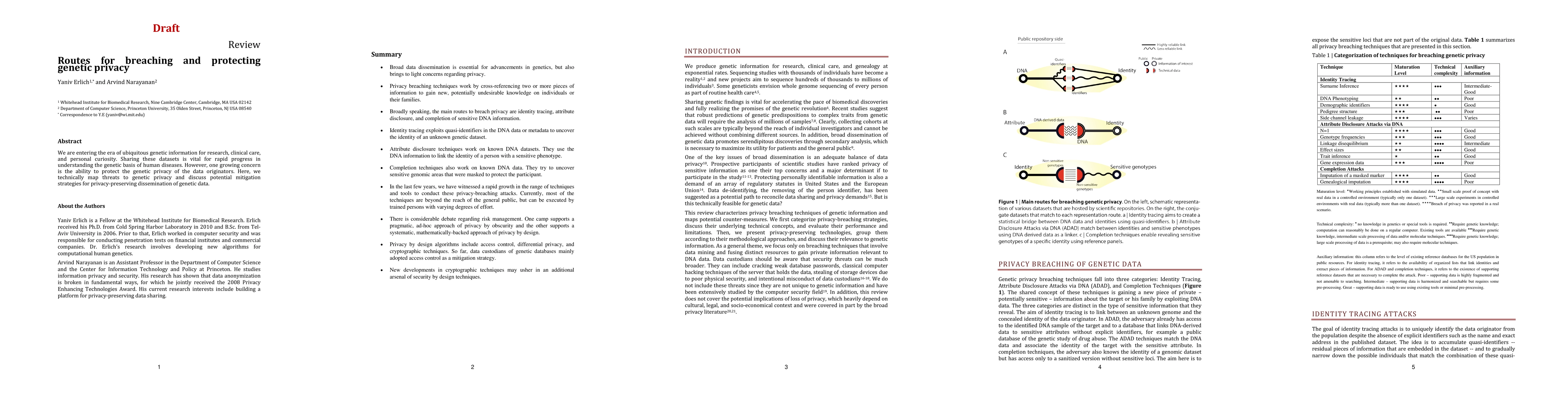 We are entering the era of ubiquitous genetic information for research, clinical care, and personal curiosity. Sharing these datasets is vital for rapid progress in understanding the genetic basis of human diseases. However, one growing concern is the ability to protect the genetic privacy of the data originators. Here, we technically map threats to genetic privacy and discuss potential mitigation strategies for privacy-preserving dissemination of genetic data.