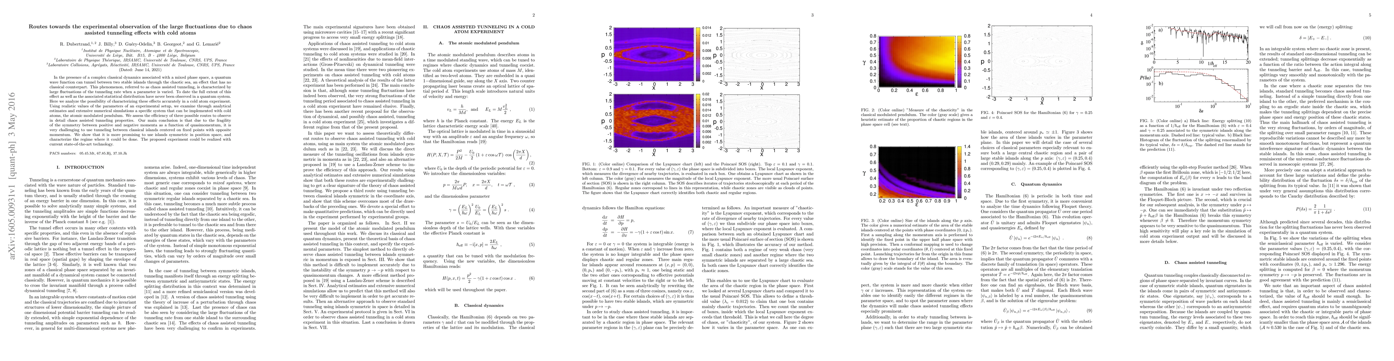 This paper explores the experimental observation of chaos assisted tunneling in cold atom systems, focusing on large fluctuations in tunneling rates. It proposes the atomic modulated pendulum as a feasible model and evaluates three routes for detailed observation, concluding that symmetry in position space offers the best chance for successful implementation with current technology.