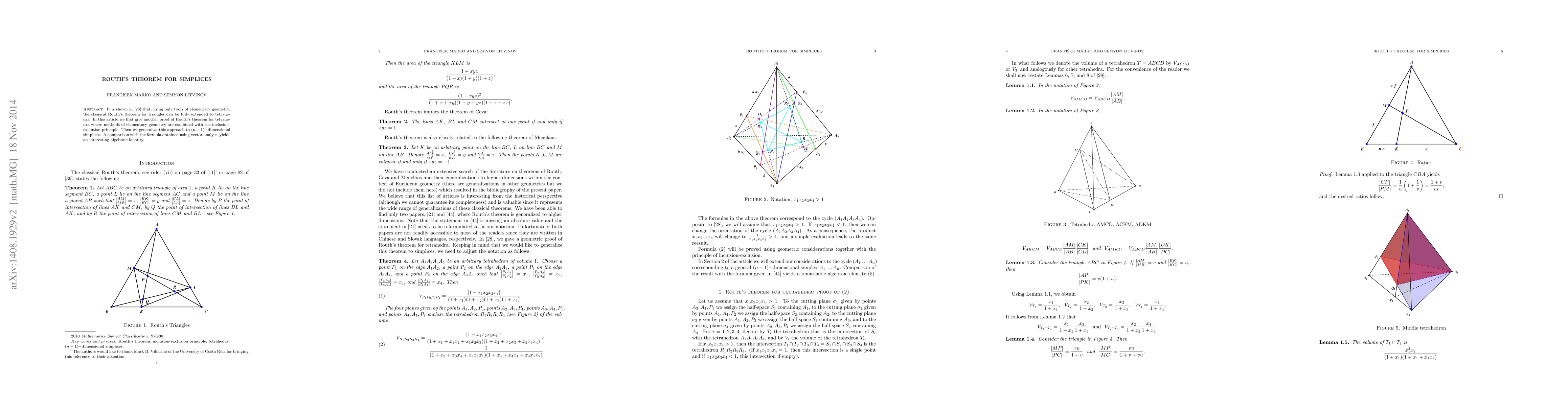 Researchers extend Routh's theorem to simplices using elementary geometry and the inclusion-exclusion principle, generalizing it to n-dimensional shapes.
