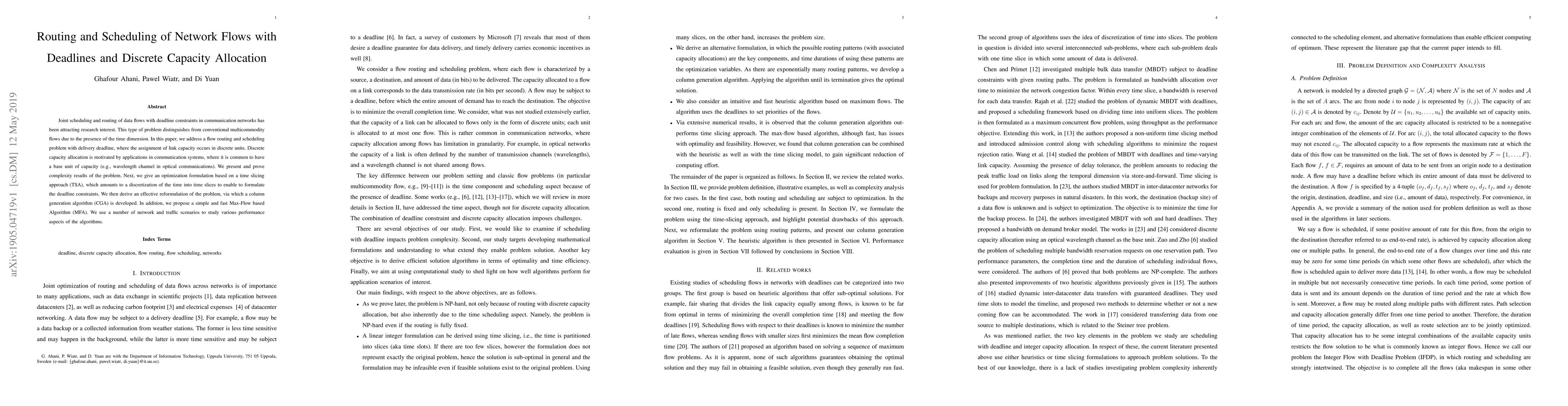 Researchers developed algorithms to optimize data flow routing and scheduling in communication networks with deadlines and discrete capacity allocation, improving performance in various network scenarios.