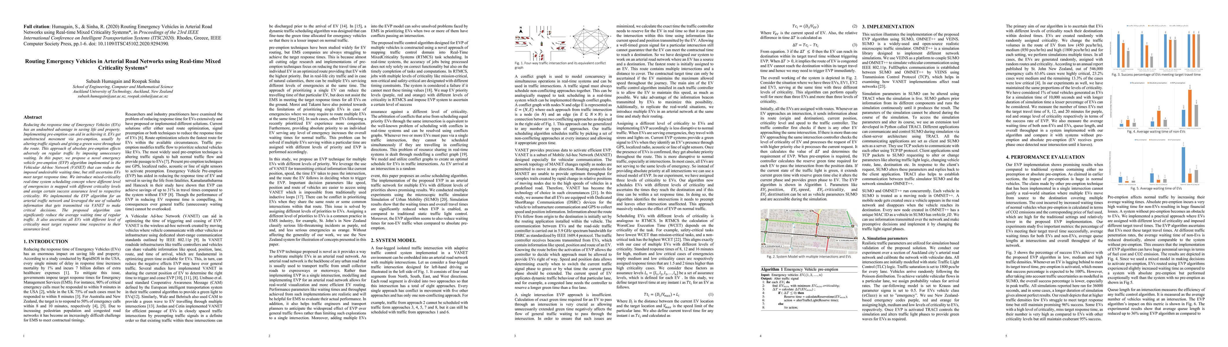This paper proposes an emergency vehicle pre-emption (EVP) algorithm within a Vehicular Ad-hoc Network (VANET) to reduce waiting time for regular traffic while ensuring emergency vehicles meet target response times. The algorithm uses mixed-criticality real-time scheduling to prioritize different emergency levels, significantly reducing average waiting time for regular traffic while maintaining response assurance levels.