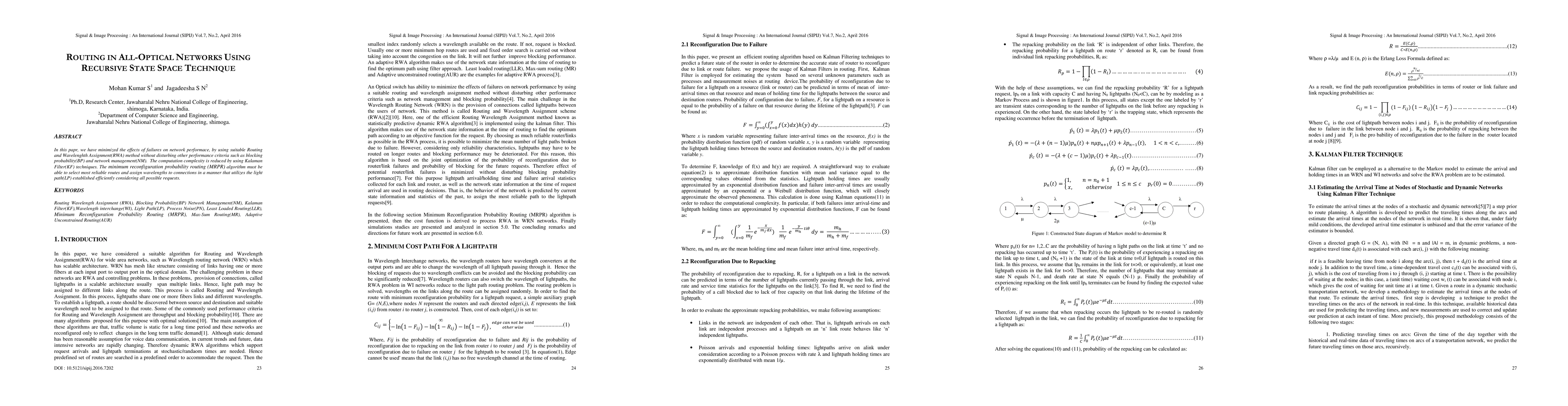 This paper proposes a recursive state space technique for routing in all-optical networks, minimizing failure impacts on network performance using a Routing and Wavelength Assignment (RWA) method while maintaining blocking probability and network management. The Kalman Filter technique reduces computational complexity, and the minimum reconfiguration probability routing algorithm selects reliable routes and efficiently assigns wavelengths.