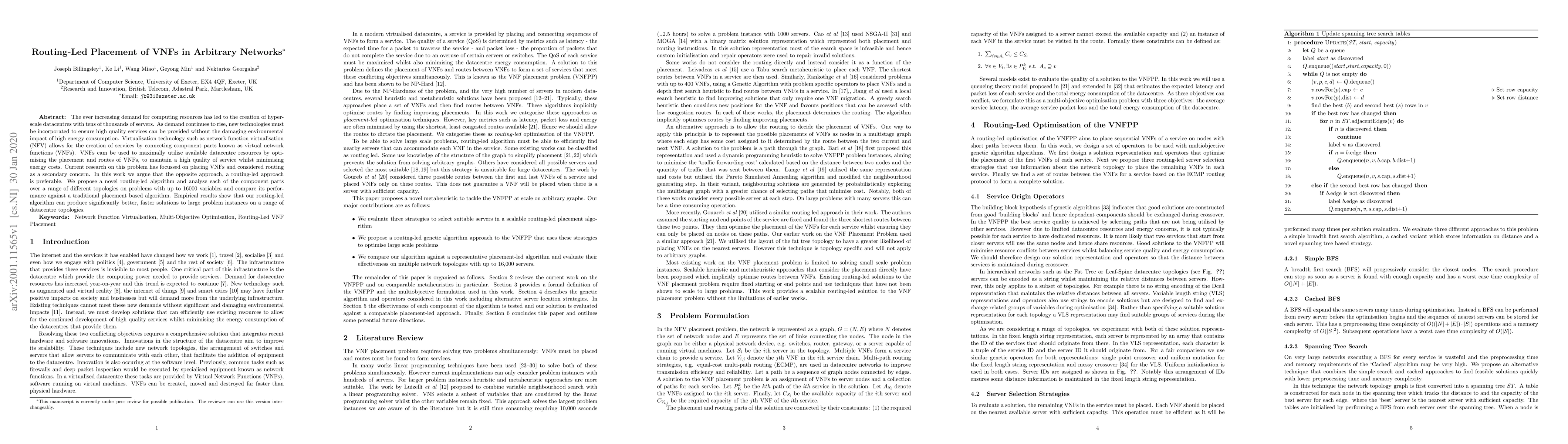 The ever increasing demand for computing resources has led to the creation of hyperscale datacentres with tens of thousands of servers. As demand continues to rise, new technologies must be incorporated to ensure high quality services can be provided without the damaging environmental impact of high energy consumption. Virtualisation technology such as network function virtualisation (NFV) allows for the creation of services by connecting component parts known as virtual network functions (VNFs). VNFs cam be used to maximally utilise available datacentre resources by optimising the placement and routes of VNFs, to maintain a high quality of service whilst minimising energy costs. Current research on this problem has focussed on placing VNFs and considered routing as a secondary concern. In this work we argue that the opposite approach, a routing-led approach is preferable. We propose a novel routing-led algorithm and analyse each of the component parts over a range of different topologies on problems with up to 16000 variables and compare its performance against a traditional placement based algorithm. Empirical results show that our routing-led algorithm can produce significantly better, faster solutions to large problem instances on a range of datacentre topologies.