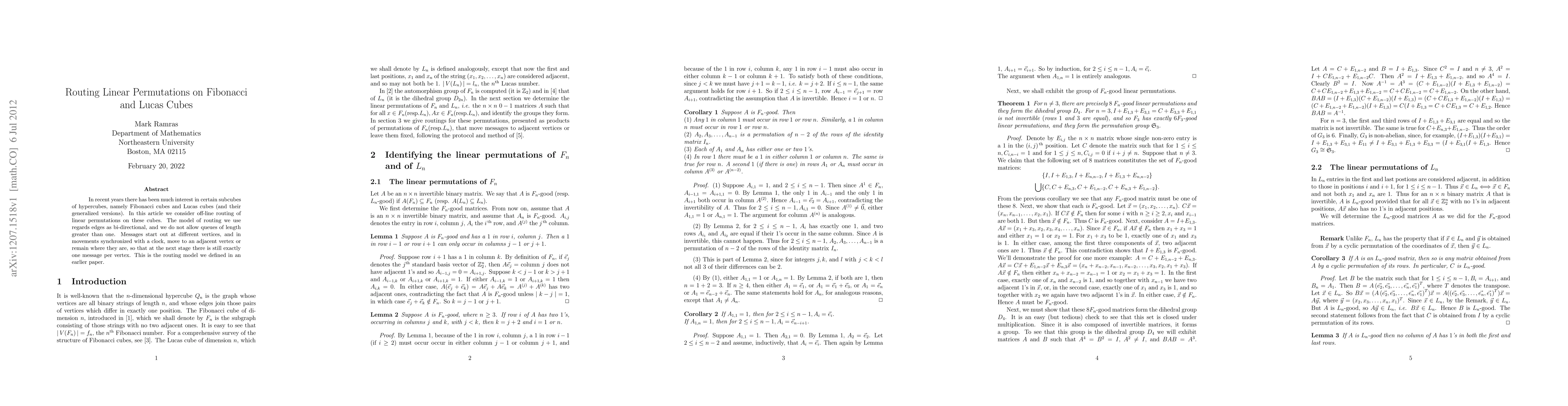 The paper analyzes online routing of linear permutations on Fibonacci and Lucas cubes, using a specific routing model with bi-directional edges and no queues of length greater than one.