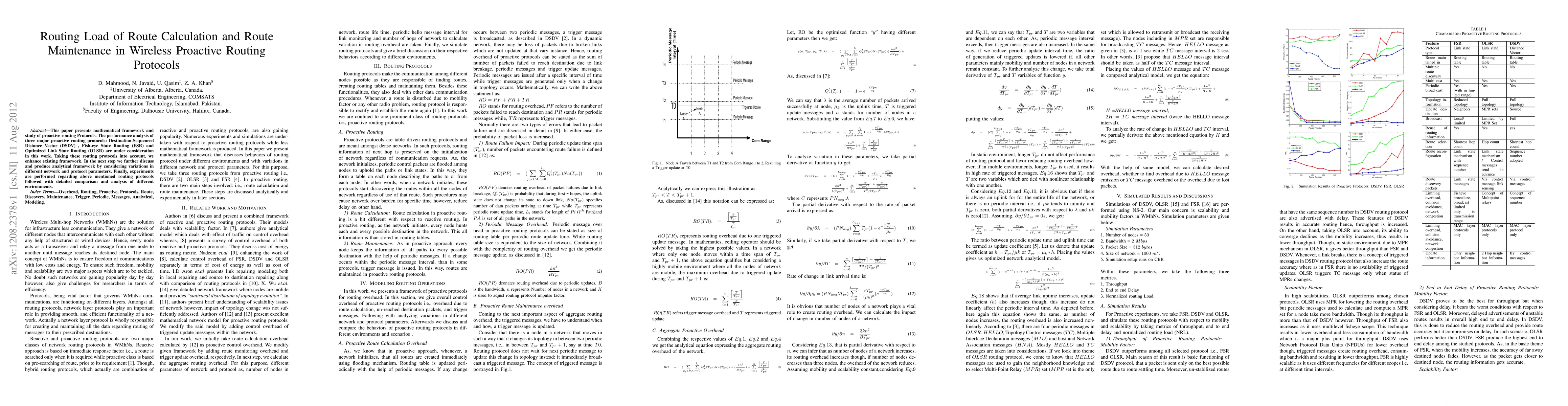 This paper develops a mathematical framework for analyzing proactive routing protocols, focusing on DSDV, FSR, and OLSR, and enhances their performance analysis by considering various network and protocol parameters. Experimental results and detailed comparisons across different environments are presented.