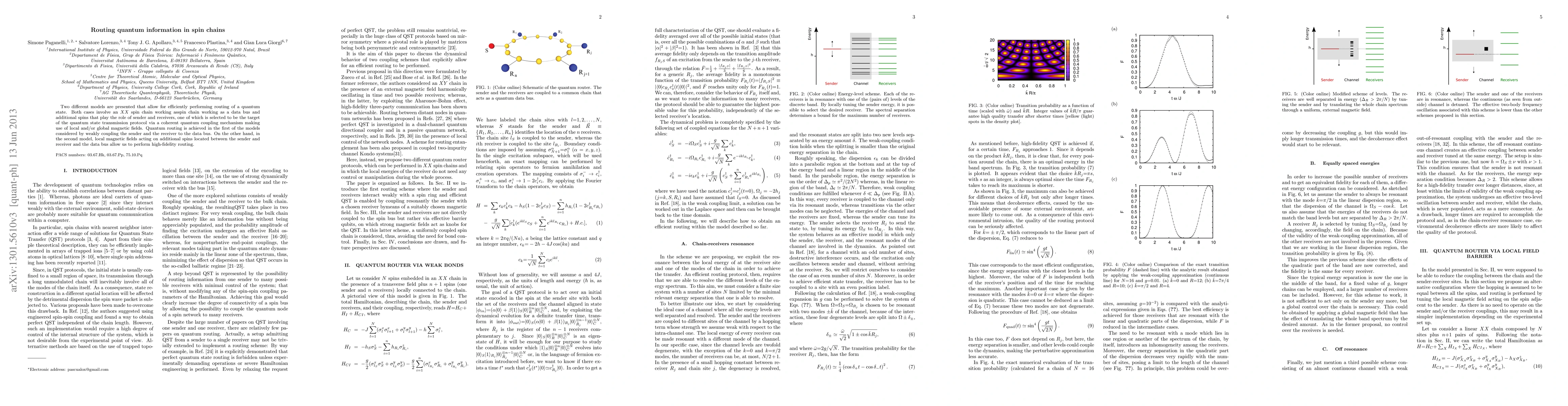 Researchers developed two models for efficiently routing quantum information in spin chains using strong magnetic fields and local/global coupling mechanisms, achieving high-fidelity transmission.