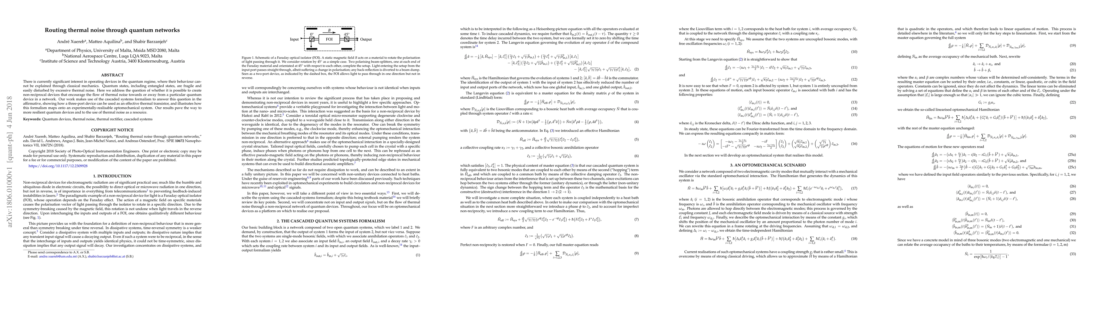 This paper explores the possibility of routing thermal noise through quantum networks using non-reciprocal devices, demonstrating a three-port thermal transistor that can direct noise flow. The study employs the cascaded systems formalism and proposes an optomechanical system implementation, aiming to enhance quantum device resilience and utilize thermal noise as a resource.