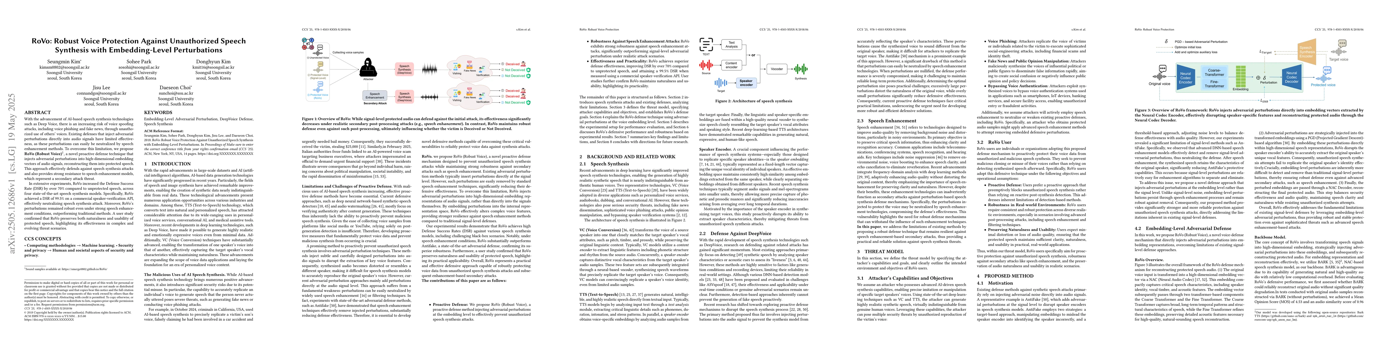 The research proposes RoVo, a defense technique that injects adversarial perturbations into high-dimensional embedding vectors of audio signals, reconstructing them into protected speech.
