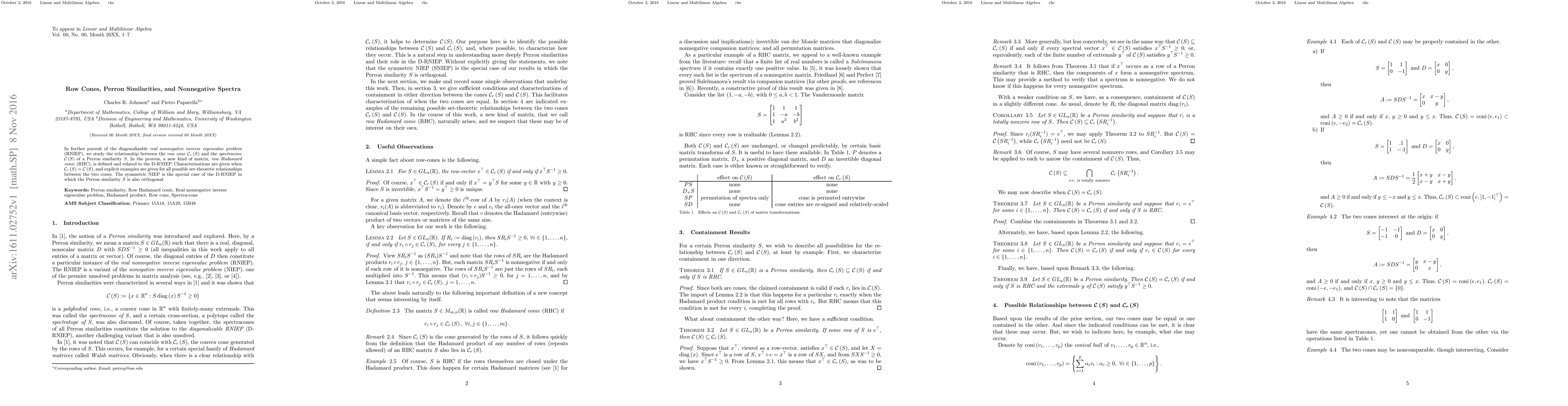 In further pursuit of the diagonalizable \emph{real nonnegative inverse eigenvalue problem} (RNIEP), we study the relationship between the \emph{row cone} $\mathcal{C}_r(S)$ and the \emph{spectracone} $\mathcal{C}(S)$ of a Perron similarity $S$. In the process, a new kind of matrix, \emph{row Hadamard conic} (RHC), is defined and related to the D-RNIEP. Characterizations are given when $\mathcal{C}_r(S) = \mathcal{C}(S)$, and explicit examples are given for all possible set-theoretic relationships between the two cones. The symmetric NIEP is the special case of the D-RNIEP in which the Perron similarity $S$ is also orthogonal.